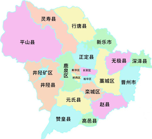 石家庄 长安区、桥西区、新华区、井陉矿区、?;?、藁城区、鹿泉区、栾城区、辛集市、晋州市、新乐市、井陉县、正定县、行唐县、灵寿县、高邑县、深泽县、赞皇县、无极县、平山县、元氏县、赵县 |