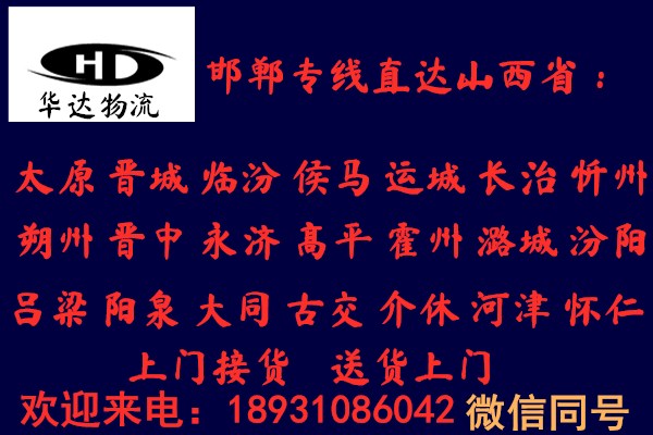 邯郸到阳泉物流公司运费查询:18931086042华达物流以一流的服务体系,本着安全,准时,互友,互惠的原则赢得市场,只要一个电话,一切由我公司操办, 望广大新老客户给予大力支持、与我公司联络,我们将竭诚为您提供一切方便,欢迎来人来电咨询!